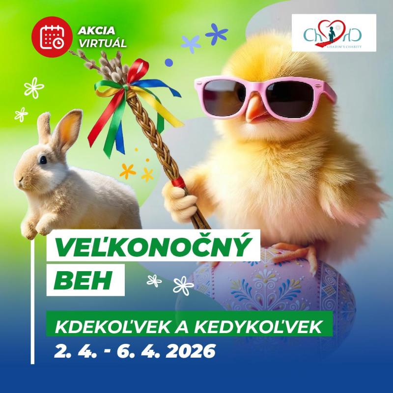 Zapoj sa do veľkonočného behu a pomáhaj pohybom kedykoľvek a kdekoľvek od 2. 4. do 6. 4. 2026. Stačí si zapnúť hodinky alebo mobilnú aplikáciu, zdolať ľubovoľným pohybom 5 km a nahrať dôkaz o aktivite do svojho profilu.